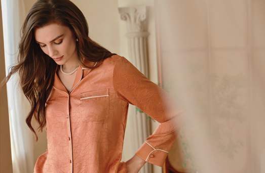 法国女士内衣&泳衣设计专家Cilia Boes联名设计花型,将品牌logo元素幻化为抽象玫瑰提花,绽于6A级桑蚕丝之上。此系列以「去发光,不止被照亮」为灵感,诉说女性自信光芒。桑蚕丝珍珠般的流光质感,垂顺回弹间,赋予身体呼吸般的自由,织就居家时光的慵懒与精致。